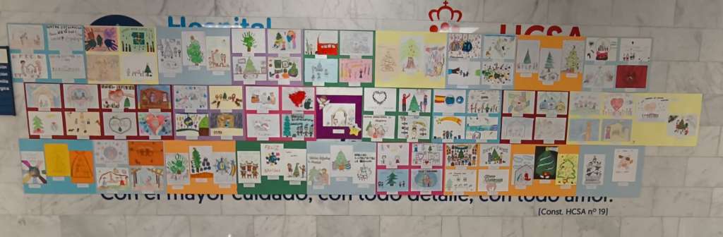 Todas las ilustraciones presentadas se exponen, a modo de mural, en la entrada principal del Hospital durante las fiestas. La mirada infantil de la Navidad brilla más que nunca entre nosotros.